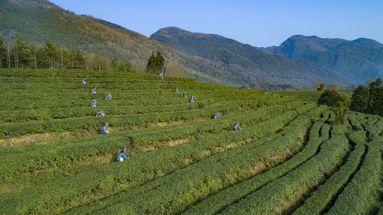 綠水映青山,青山育好茶,放眼望去,茶山上茶樹層層疊疊,郁郁蔥蔥,茶山又遇一年暖春,田壟又是一片繁忙。