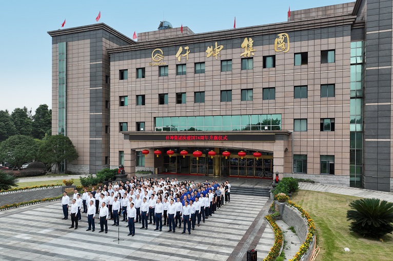 上午8:30分清晨的陽光灑在公司廣場(chǎng)上,伴隨著晨風(fēng)的拂過,國(guó)旗緩緩升起,紅色的旗幟在藍(lán)天中熠熠生輝。集團(tuán)董事長(zhǎng)謝世千帶領(lǐng)集團(tuán)中高層管理人員和100余名職工代表整齊而莊嚴(yán)地站在國(guó)旗下,面向國(guó)旗,唱響國(guó)歌,仰望著冉冉升起的國(guó)旗。