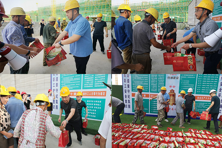 夏日驕陽(yáng)似火,建筑工地更是熱浪滾滾,為使廣大職工度過(guò)一個(gè)安全、健康、衛(wèi)生、清涼的夏季。8月10日上午,仟坤集團(tuán)總裁謝澤波,集團(tuán)常務(wù)副總裁葉金春,集團(tuán)黨委書(shū)記、副總裁周述軍,集團(tuán)副總裁趙新強(qiáng)來(lái)到仟坤水街和仟坤天璽項(xiàng)目工地看望仟坤建設(shè)的一線建筑工人。